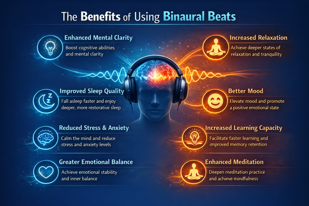 Binaural beats can significantly enhance various aspects of your daily life, including: